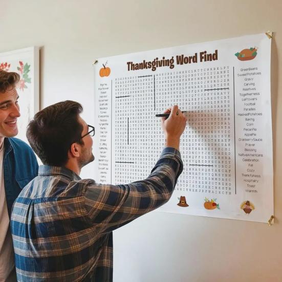 Zanurz się w świątecznym duchu dzięki 50 słowom związanym z Świętem Dziękczynienia, które znajdują się na naszym tematycznym plakacie do wyszukiwania słów. Ta wciągająca łamigłówka, lubiana przez osoby w każdym wieku, zbliża rodziny podczas Święta Dziękczynienia i Bożego Narodzenia, czyniąc spotkania niezapomnianymi i interaktywnymi.