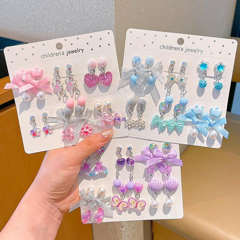 Kreskówkowe kolczyki dla dziewczynek bez przekłuwania - Słodkie, bezbolesne, letnie akcesoria na uszy dla dziecka