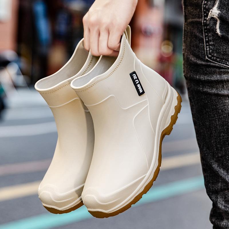 Wiosna i Jesień Nowe Krótkie Kalosze Męskie Modne Kolorowe Outdoorowe Wodoodporne Niskie Kalosze Męskie Ciepłe Gumowe Buty Męskie