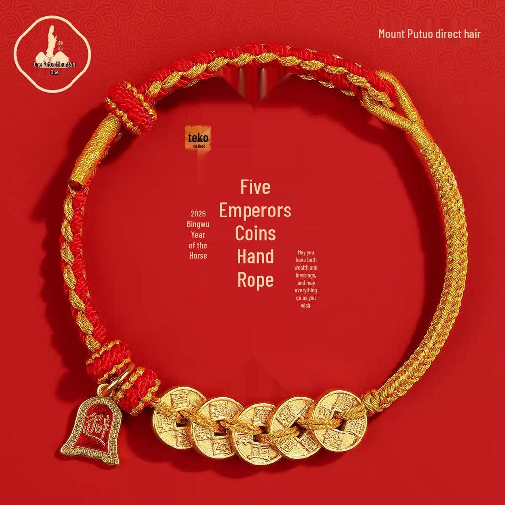 Bransoletka z Czerwonego Sznurka z Monetą Pięciu Cesarzy z Putuoshan – Ręcznie Pleciona Lina na Szczęście, Unisex Prezent.