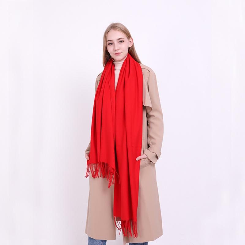 Women's High-End Korean Style Tassel Scarf - Imitation Cashmere, Solid Color, Thickened Neck Warmer Shawl for Autumn and Winter.