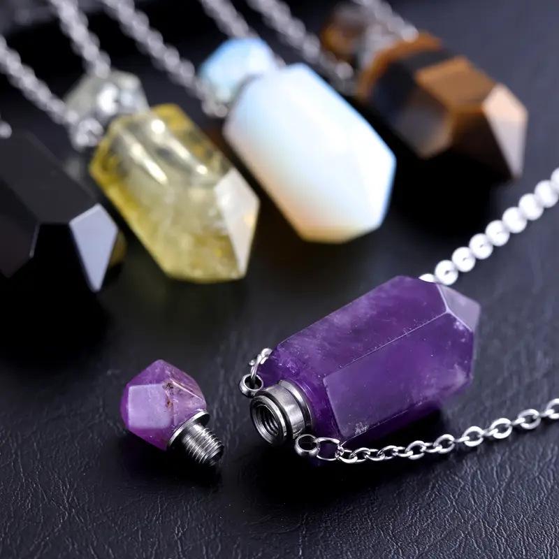 Hexagonal Amethyst Perfume Bottle Necklace for Aromatherapy