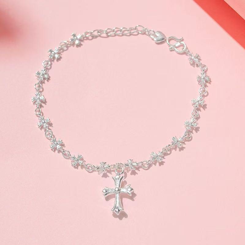 Wykwintna Srebrna Próby 925 Retro Bransoletka z Krzyżykiem: Luksusowy europejski i amerykański design z wyrazistym łańcuszkiem na obojczyk