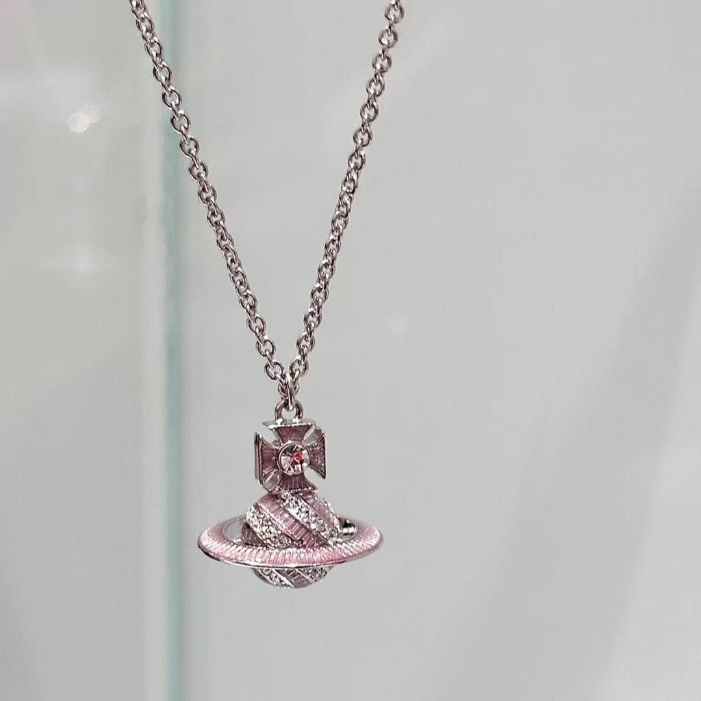 Westwood 3D Planet Różowy Emaliowany Naszyjnik: Wykwintny Łańcuszek do Swetra w Stylu Light Luxury dla Kobiet.