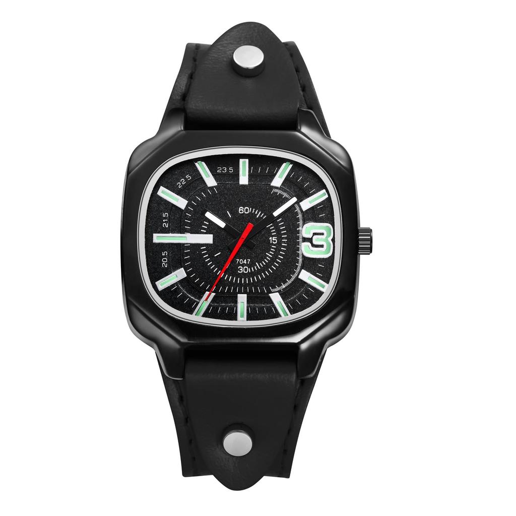 Kwadratowy zegarek z paskiem z prawdziwej skóry i luminescencyjny analogowy duży zegarek kwarcowy z regulacją unisex Idealny prezent dla lub dowolny męski wyświetlacz Retro,