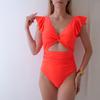 This elegant one-piece swimsuit is designed for women who appreciate style and sophistication. Crafted from high-quality polyester, it features a slimming high-waist cut that enhances your silhouette. The solid pattern adds a touch of timeless elegance, while the ruffle detailing and backless design offer a chic and playful look. Perfect for sun-soaked beach days or lounging by the pool, this swimsuit combines fashion and comfort effortlessly.