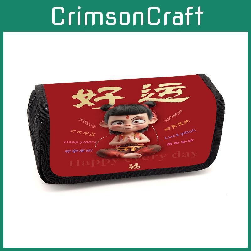 This Nezha-themed pencil case is crafted from durable Oxford fabric. Designed to support small students, it offers ample space for school supplies and features a sleek, minimalist style suitable for boys and girls alike.