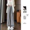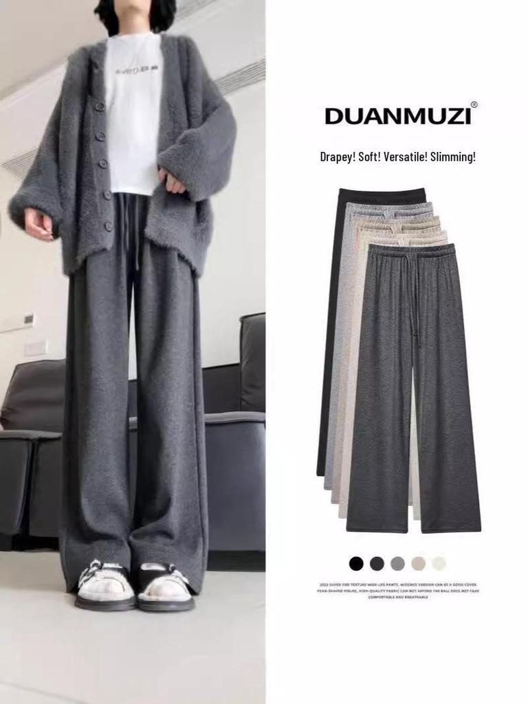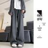 Plus Size Women's Gray High Waist Wide-Leg Pants - Spring/Summer Casual Draped Trousers