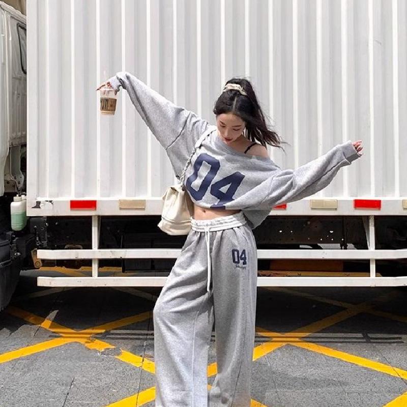 Damski jesienny dres w koreańskim stylu: Luźny Krój i Modelujące Spodnie z Szerokimi Nogawkami Zestaw Dwuczęściowy - Trend Mody Influencerów.