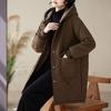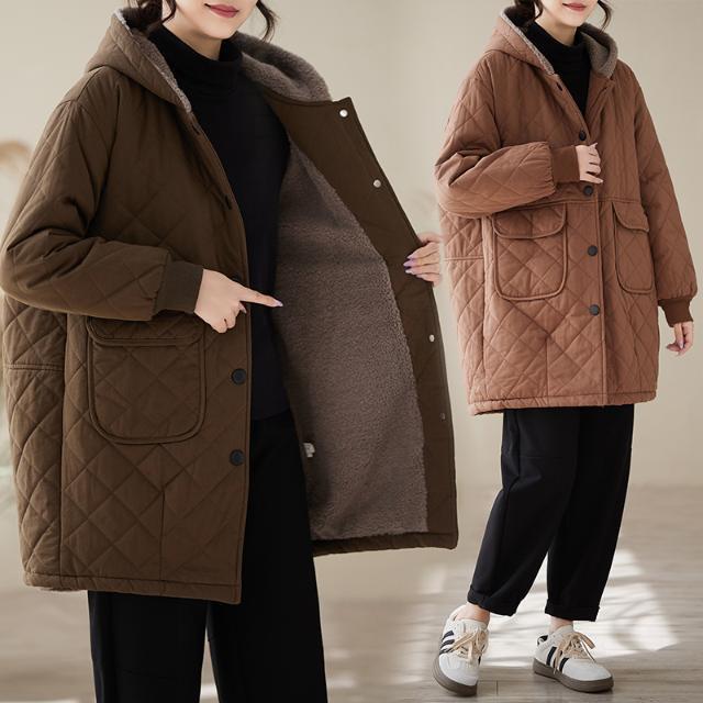 Women's Mid-Length Quilted Cotton Jacket with Hood – Warm Lambswool, Available in Orange-Red, Coffee-Green, Black