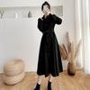 Korean Style Waist-Hugging Corduroy Shirt Dress - Women's Mid-Length, Single-Breasted, Long Sleeve, Over-the-Knee for Fall/Winter
