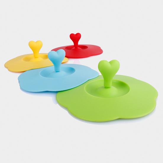 Pokrywka na kubek Dopuszczone do kontaktu z żywnością Uchwyt w kształcie serca Silikonowa, jednokolorowa, przeciwkurzowa pokrywka na kubek na kubek