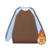 Damska bluza z blokami kolorów, podszyta polarem: Luźny raglanowy długi rękaw, okrągły dekolt, idealny na jesień i zimę.