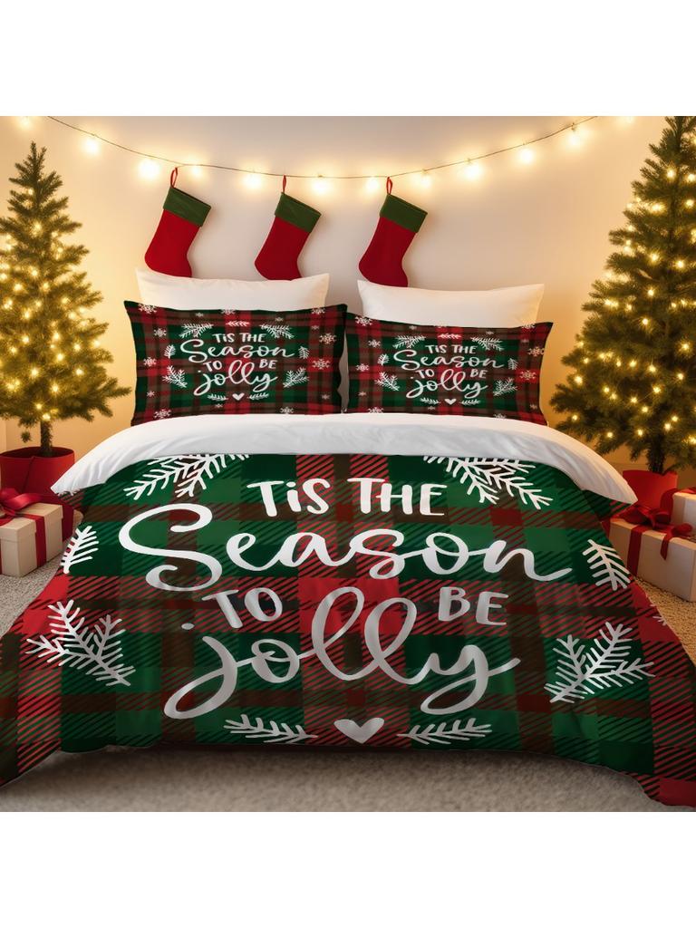 3 szt. Świąteczny Zestaw Pościeli w Kratę Bez Wypełnienia Wygodny Pokój w Akademiku Dekoracja Świąteczna Dostępny w Wielu Rozmiarach Można Prać w Pralkce