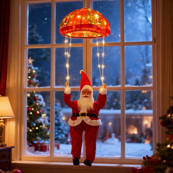 Unikalny wzór Świętego Mikołaja na spadochronie: Udekoruj swój dom na święta tymi kapryśnymi lampkami w kształcie spadochronu Świętego Mikołaja.. Ciepłe i jasne oświetlenie emanuje radością i świąteczną atmosferą, idealne do wnętrz i na zewnątrz.