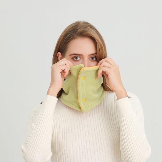 Women Scarf Double Layer Thickened Velvet Warm Neck Warmer with Button Closure Solid Color Design Winter Scarf