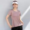Damska koszulka do jogi z krótkim rękawem - Oddychająca, wyszczuplająca, średniej długości top sportowy