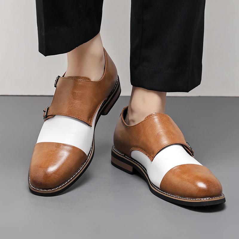 Men Shoes Casual Fashion Dress Shoes Stitched Buckle Strap Formal Footwear