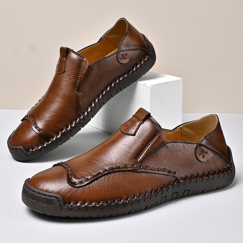 Handmade Leather Casual Shoes Lightweight Mens Loafers Classic Business Slip on Flats Leisure Walk Soft Moccasins Driving Shoes