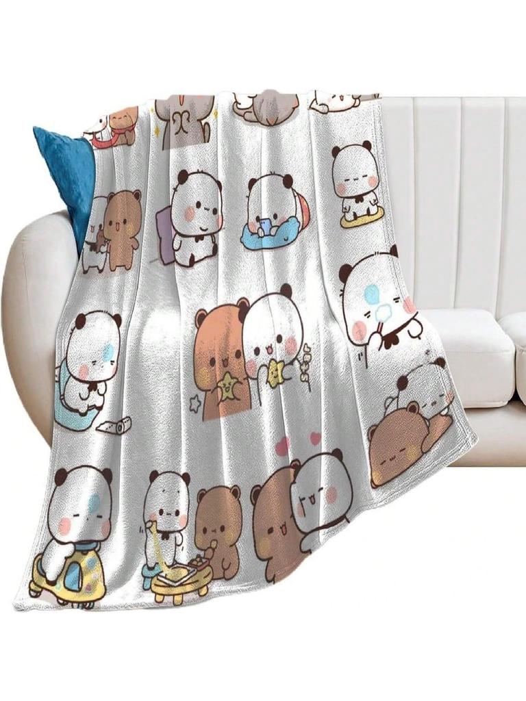Uroczy Miś Panda Bubu I Dudu-1 Nowy Flanelowy Pluszowy Koc na Sofę Koce do Łóżka Pasujący na Kanapę Koc do Salonu 50x60 Cal