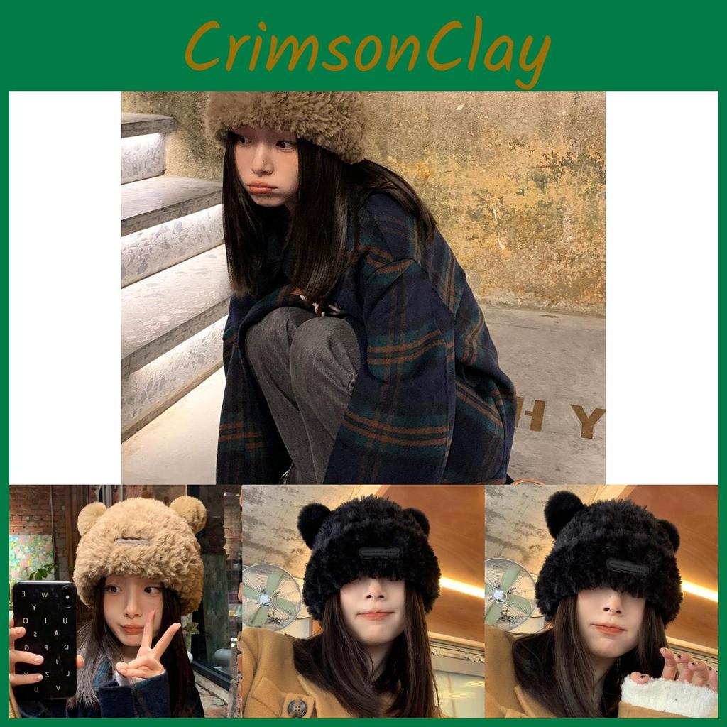 Bear Plush Elegant Knit Hat For Women Winter Warm Thick Fur Cap Beanie