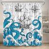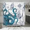 Vintage nautical octopus waterproof shower curtain Navy Blue Mermaid Fun Ocean Sea Monster bath shower curtain anchorage map
