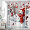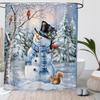 Winter Christmas Shower Curtain, Cute Snowman Winter Forest Pine Tree Scene Shower Curtain For Bathroom Rustic Farmhouse Xmas