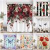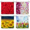Rustic Flowers Shower Curtains Red Pink Rose Butterfly Sunflower Spring Nature Floral Bath Curtain Set Bathroom Decor With Hooks