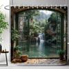 Chinese Archway Scenic Shower Curtain Landscape Waterfall Outdoor Landscape Polyester Fabric Shower Curtains Bathroom Decoration