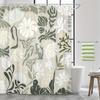1 MESHELLY Boho Floral Shower Curtain - Abstract rustic sage green with orange, beige and teal flowers, polyester fabric