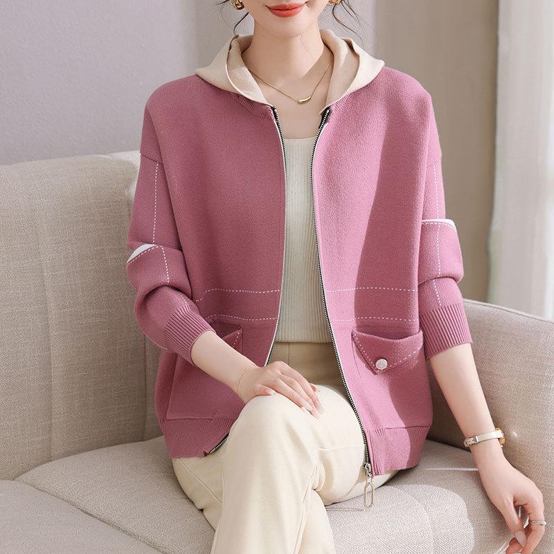 2025 Spring & Autumn Hooded Knit Cardigan for Middle-Aged & Elderly Women