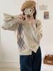 Damski kardigan z dzianiny w romby z wełny merino - Seksowny sweter z okrągłym dekoltem na jesień/zimę