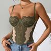 Ten uwodzicielski top na ramiączkach ma urzekający prześwitujący design ozdobiony delikatną koronkową lamówką, idealny do odważnego wyrażania siebie.. Wykonany z wysokiej jakości poliestru, zapewnia wygodę i styl. Misterna koronkowa dekoracja dodaje odrobinę elegancji, czyniąc go idealnym wyborem na wieczorne wyjście lub specjalną okazję.