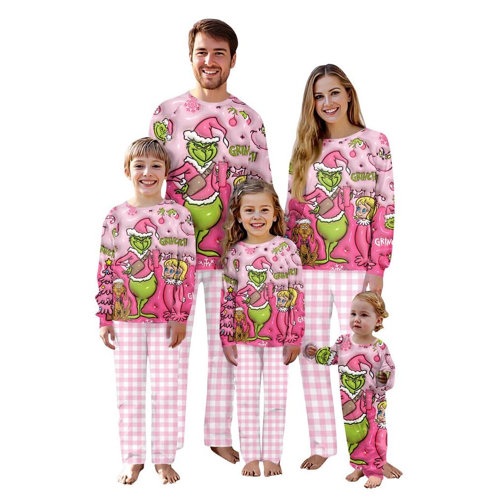 Zestaw rodzinny z długimi rękawami i spodniami w nadruki świąteczne Zestawy rodzinne