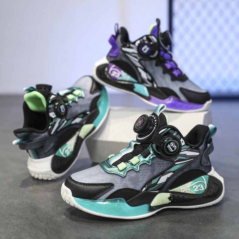 2025 new fashion shoes middle and older children's casual rotating button sports shoes cushioning mesh breathable basketball shoes