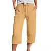 YYFS Modne damskie spodnie i spodnie capri, na co dzień, w jednolitym kolorze, z wysokim stanem