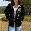 Women's Casual Fashion Long Sleeve Zipper Printed Hooded Sweatshirt