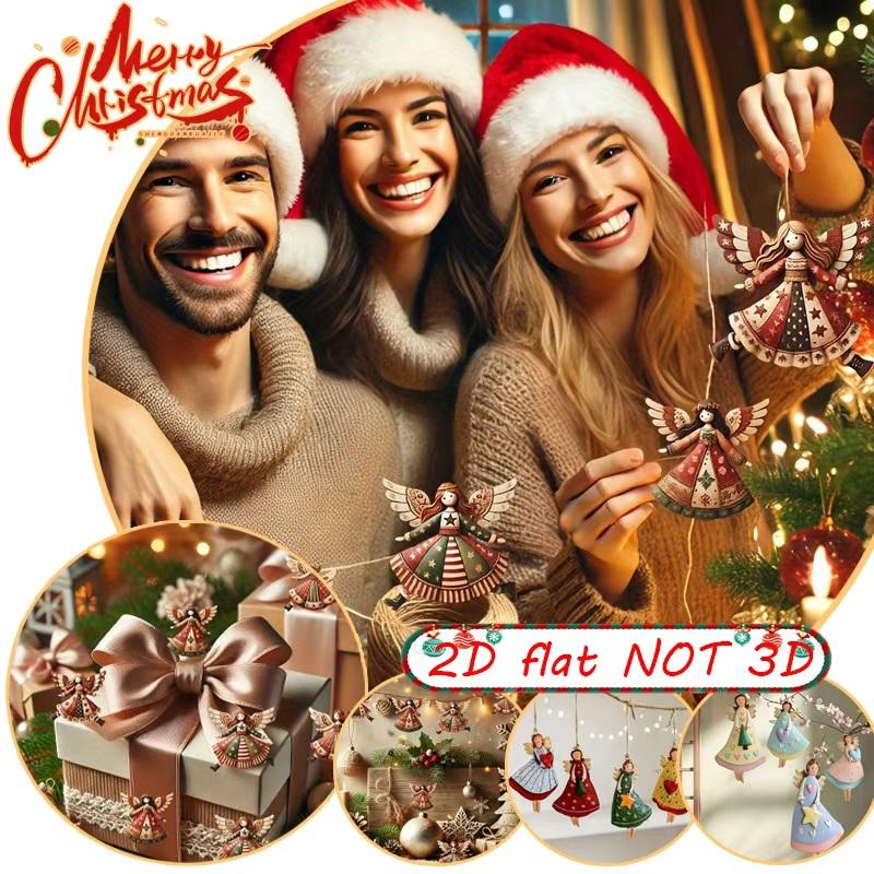 4 SZT. Vintage Drewniane Ozdoby Aniołków Ręcznie Robione Dekoracje na Choinkę Wielokolorowe Wiszące Prezenty do Domu Biura na Przyjęcie