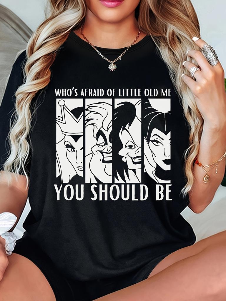 Modna Koszulka Plus Size Damska - Casualowa z Okrągłym Dekoltem i Krótkim Rękawem z Unikalnym Nadrukiem Postaci Złoczyńcy, Oddychający Poliester, Można Prać w Pralce