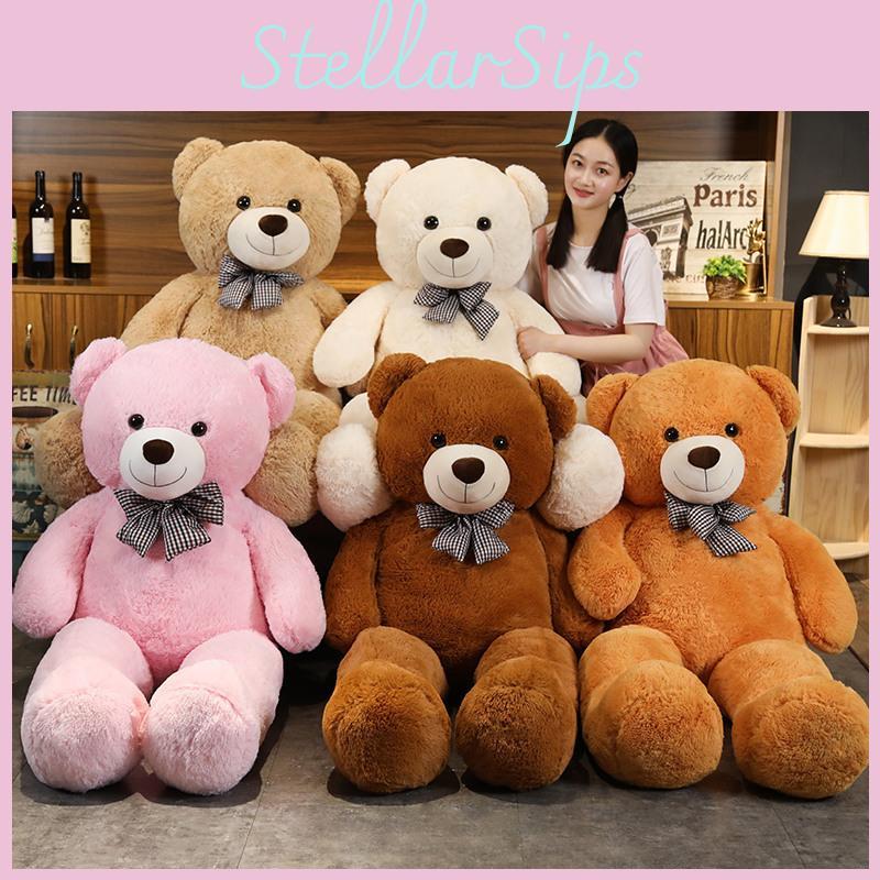 Bear Teddy Oversized Plush Toy With Checkered Bow Decoration For Gift Kids