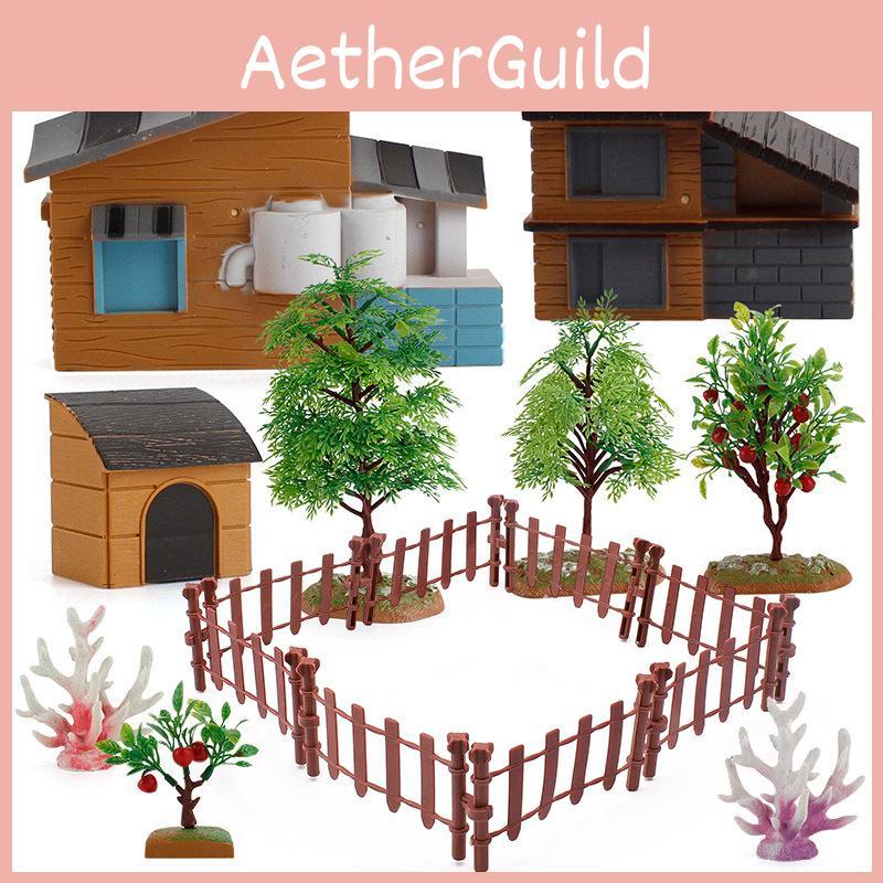 Symulacja Ogrodzenia Drzewo Owocowe Woda Dom z Trawy Model Mikro Sceny Ornament