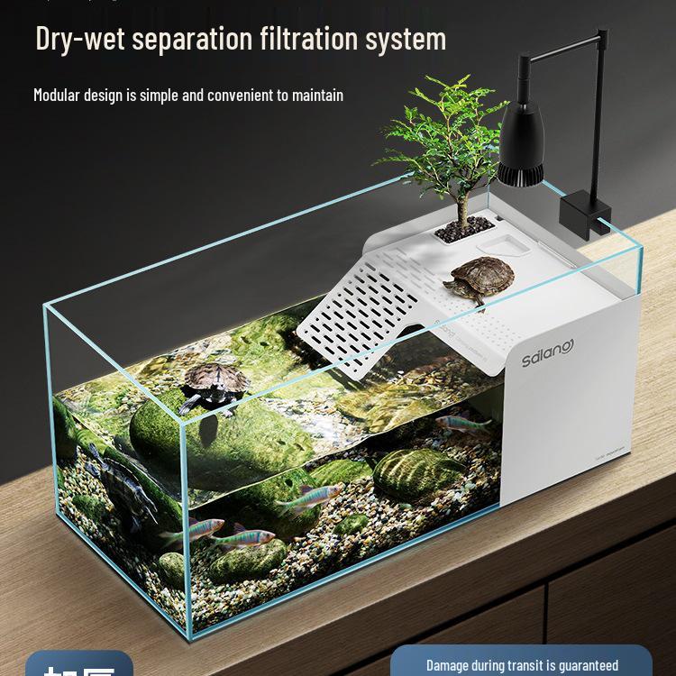 Turtle & Fish Breeding Tank Set with Basking Platform, Dry-Wet Separation, and Side Filter Eco Glass Tank