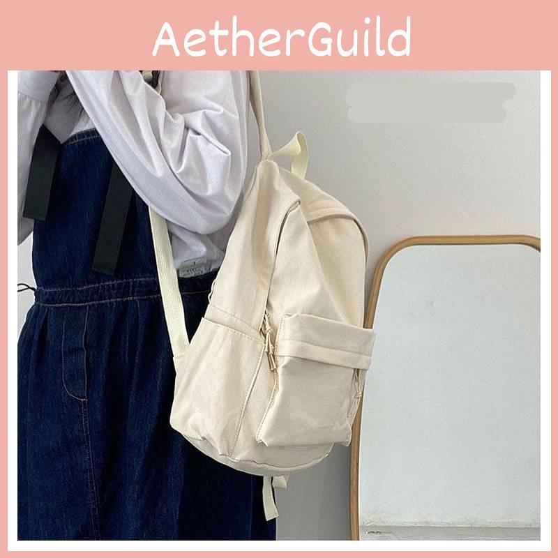 Color Solid Backpack School Bag Junior High College Students Unisex Design Gift