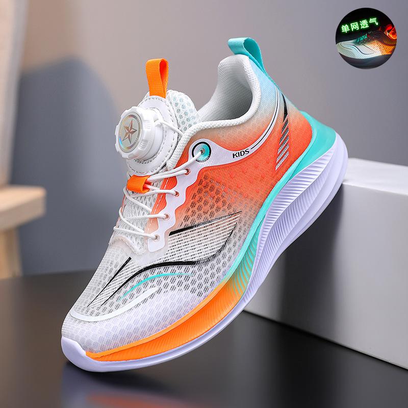 Boys' shoes spring and summer 2025 new mesh breathable non-slip children's sports shoes medium and older children's rotating button classmates
