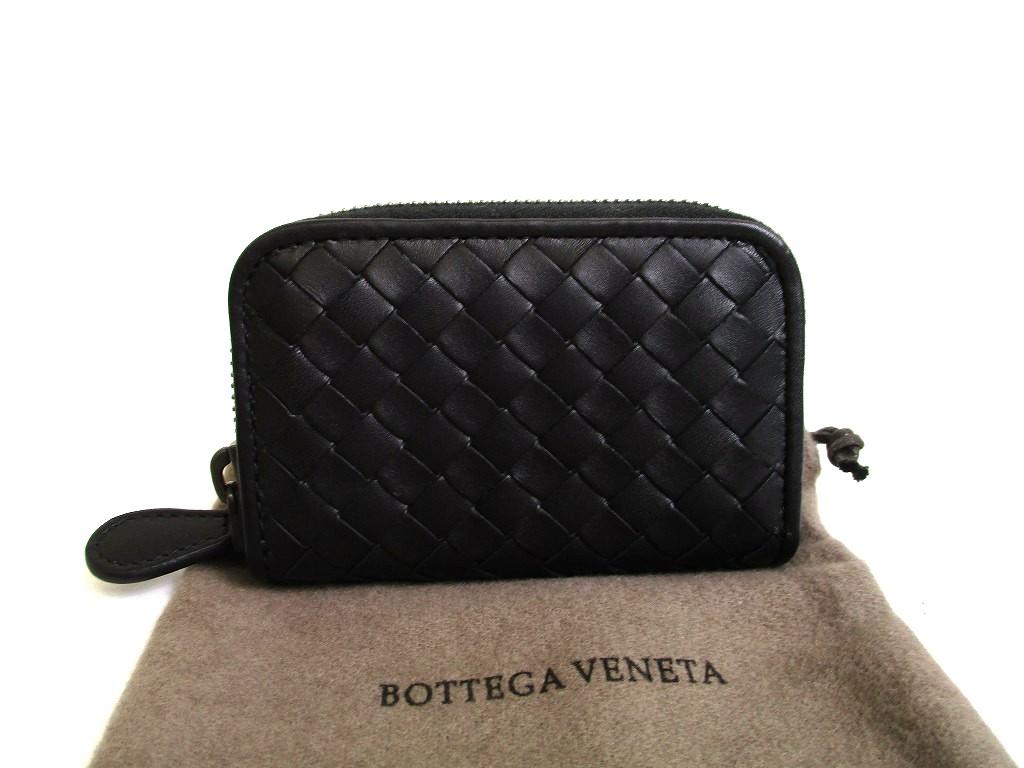 Produkt : BOTTEGA VENETA Intrecciato Czarny Skórzany Zapinany Portfel na Karty Portmonetka #a920