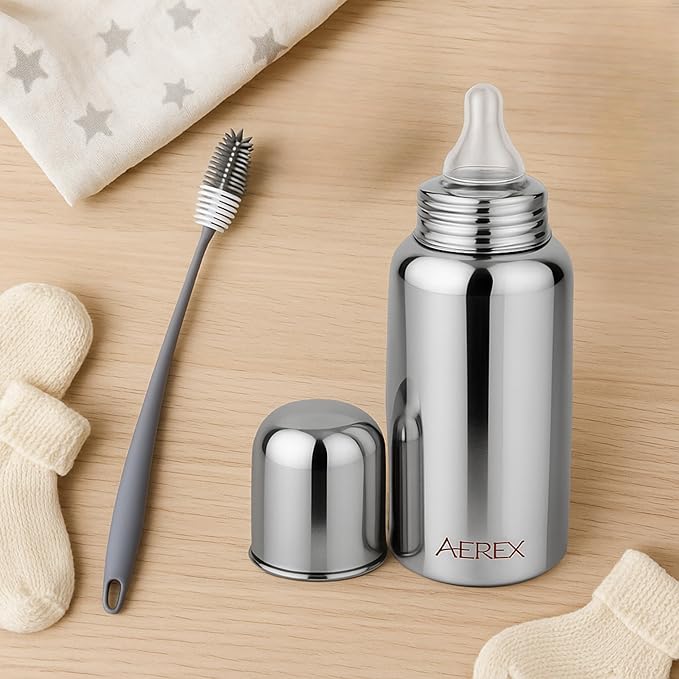 Butelka do karmienia dziecka ze szczotką do czyszczenia – Zestaw butelki do karmienia ze stali nierdzewnej i patyczka do czyszczenia