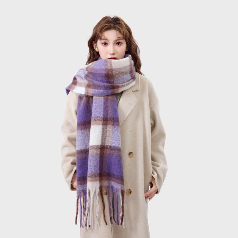 Korean-Style Thick Mohair Braid Plaid Tassel Snood Scarf for Couples and Students