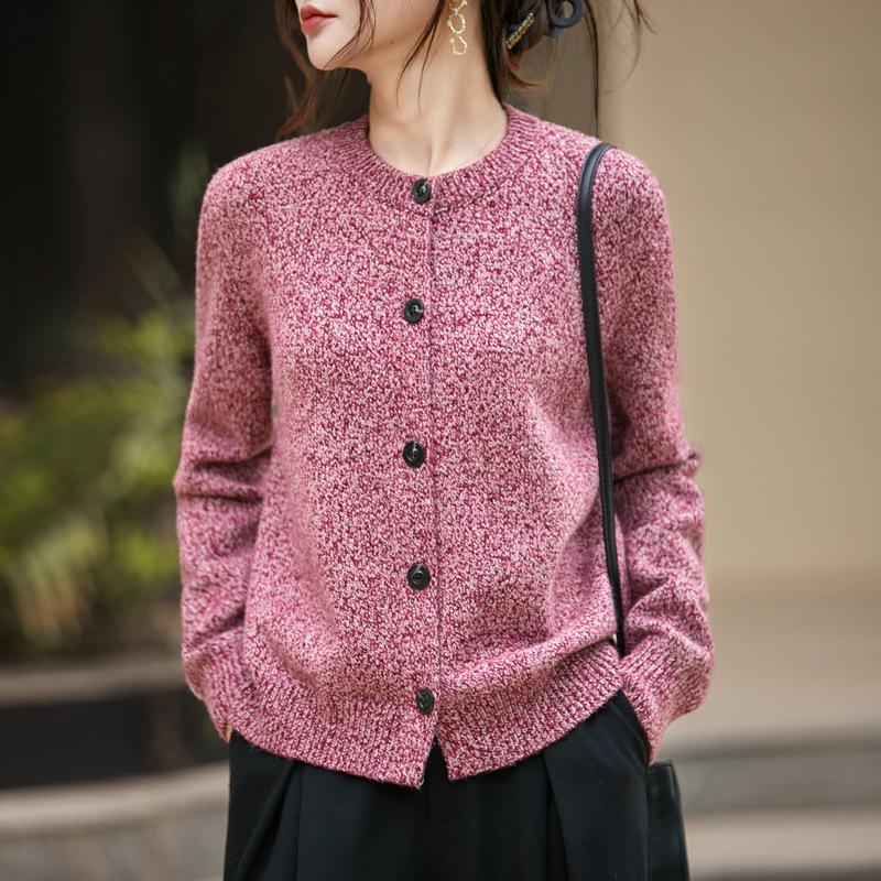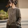 Jesienno-zimowy kardigan z dzianiny w kwiaty: Damski luźny sweter z okrągłym dekoltem, wysokiej klasy odzież wierzchnia z długim rękawem