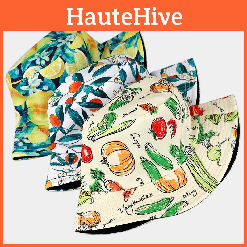 Patterned Tropical Fruit Colorful Basin Hat Reversible Wear Outdoor Sun Protect