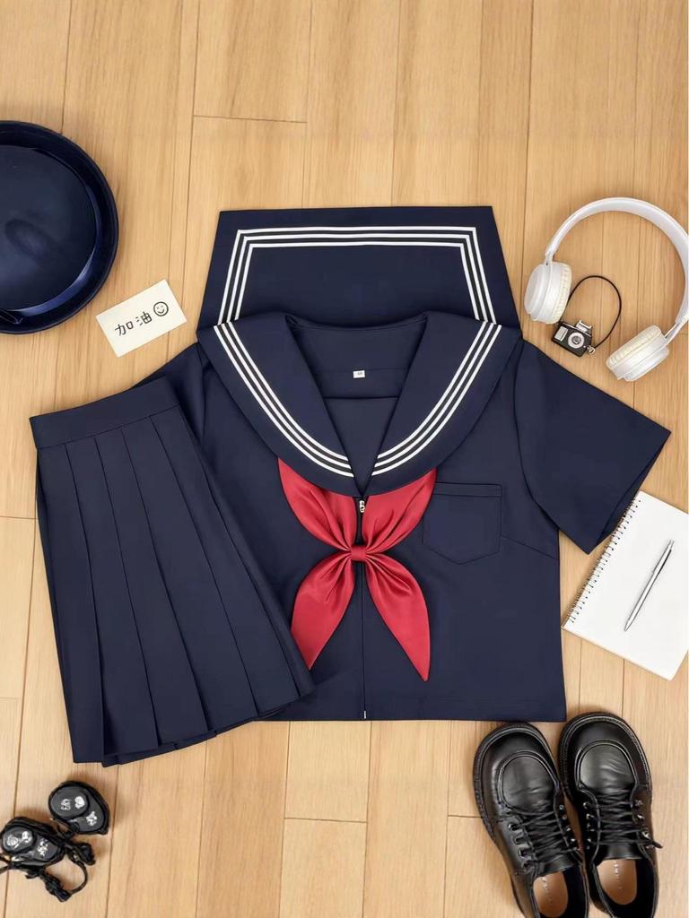 Ta stylowa spódnica to plisowany model o średniej długości, inspirowany tradycyjnymi japońskimi strojami marynarskimi.. Charakteryzuje się ciemnogranatowym odcieniem uzupełnionym klasycznym trójliniowym detalem dla autentycznego charakteru.. Wykonany z wytrzymałego materiału poliestrowego, zapewnia komfort i swobodę ruchów, odpowiedni dla uczniów poszukujących zarówno funkcjonalności, jak i stylu w swojej codziennej odzieży.